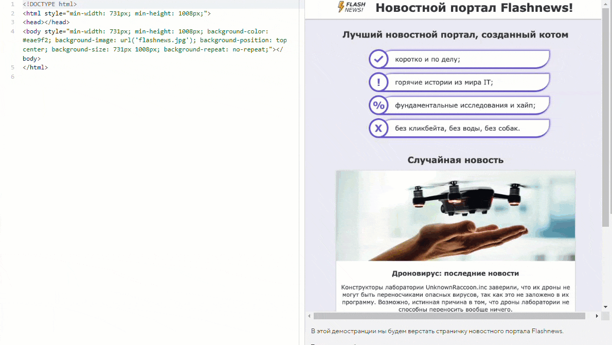 Радости не было предела, цель достигнута. За полгода интенсивного обучения получилось заложить прочный фундамент знаний и умений в новой профессии. После выпуска нужно было набраться опыта реальной разработки. Посмотрел все варианты. Решил, что лучшим будет стажировка в «Лиге А.». На этом этапе вёрстка уже не вызывала проблем.